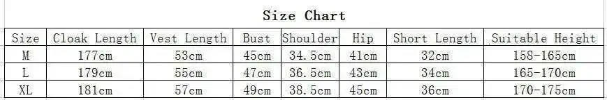 Emballage: 1 gilet + 1 short + 1 cape + chapeau