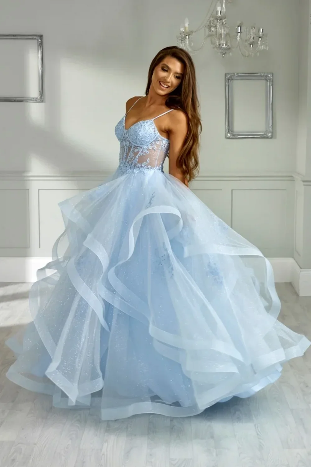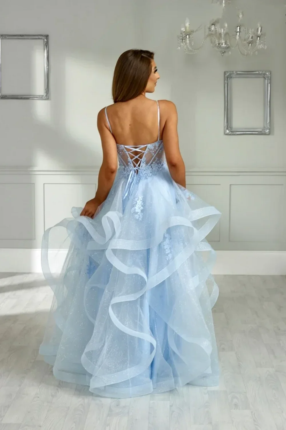 Sky Blue Wedding Dress Glitter Embroidery Prom Dresses Fluffy Tulle Multi-layer Elegant Lady Vestidos De Fiesta Customized Color