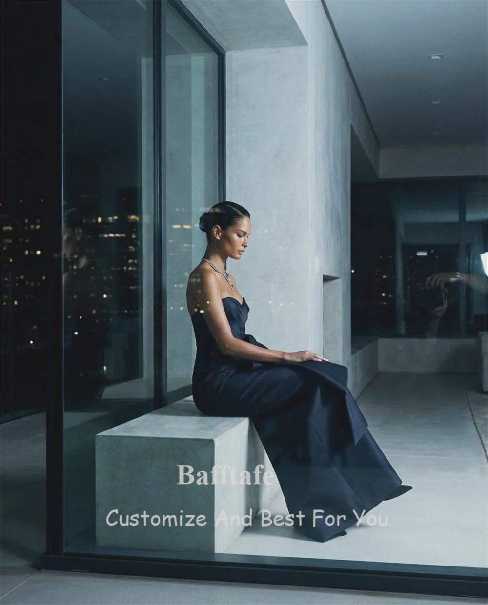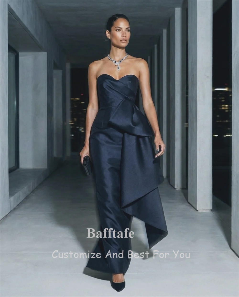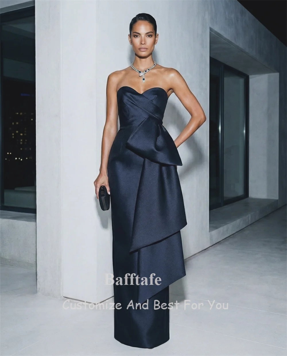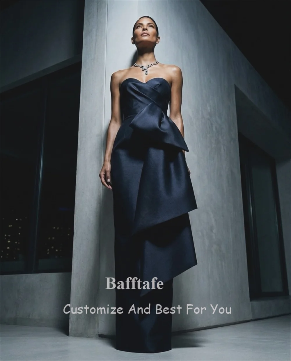 Bafftafe Customized Long Prom Dresses Sheath Satin Sweetheart Bow Special Occasion Evening Party Gowns Wedding Bridesmaid Dress